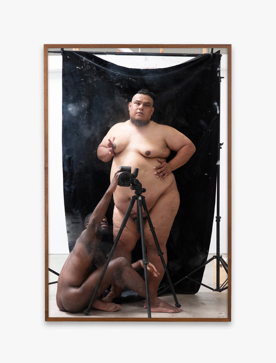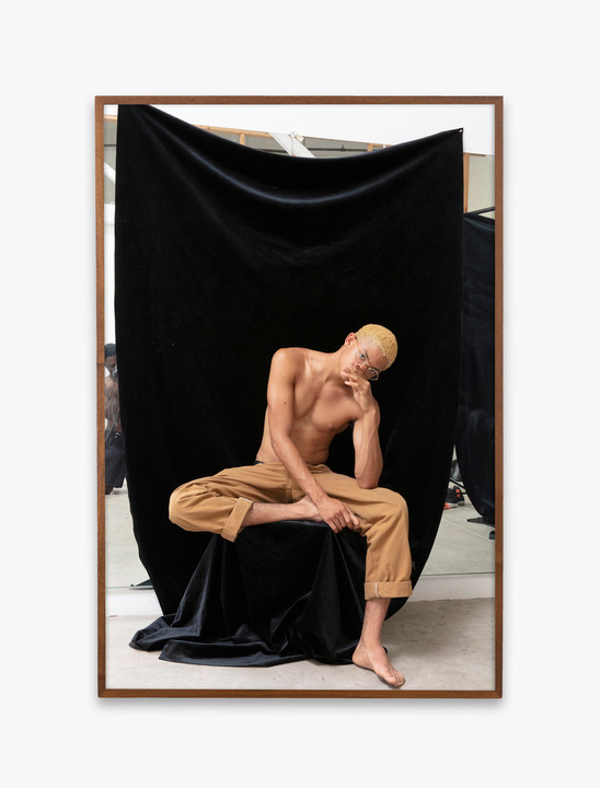 Sepuya’s photographs are, at their core, studio portraits, albeit not in the traditional sense. His works are more focused on breaking down the structures of the space, rather than upholding them. He often depicts subjects against backdrops where the edges are visible, revealing the constructed nature of the photograph.