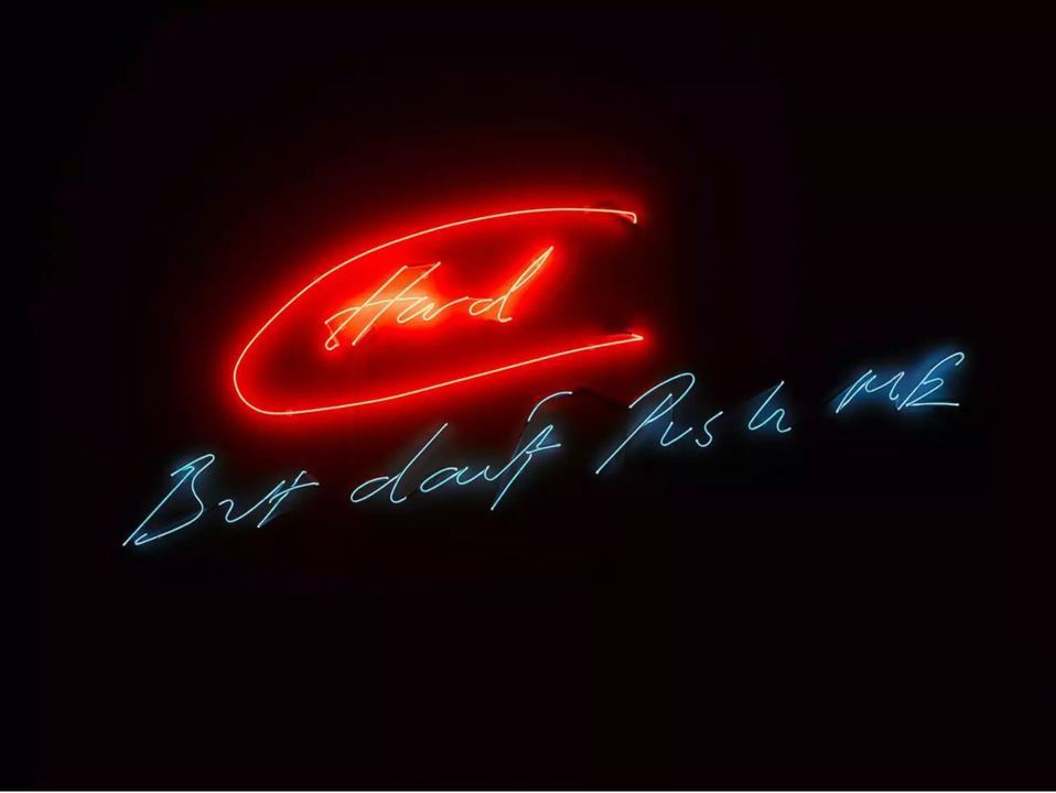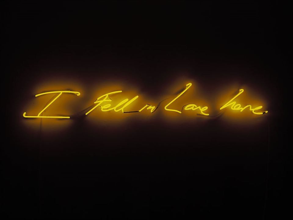 Social media has also given new context and currency to confessional art, such as the neon signs of British artist Tracey Emin. Emin began working with neon gaslights in the early 1990s, using the industrial medium in a diaristic manner to memorialise fleeting thoughts and desires. Scribbled in her handwriting, her romantic outpourings feel deeply personal but also abstract enough to pertain to each individual viewer.