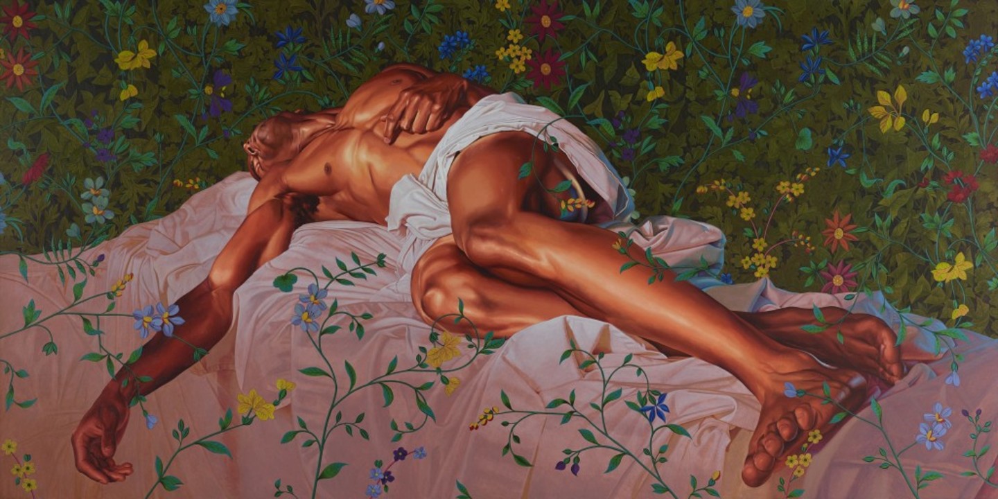 Darting between exaggeration and obfuscation, Hermes’ interventions encourage us to probe the power dynamics and gender norms painted into the old master originals. These themes are similarly interrogated by the likes of mid-career Swedish artist Arvida Byström, who plays on the symbolism of the Dutch still-life tradition as part of her exploration of femininity in digital culture, and mature New York-based artist Kehinde Wiley, who harnesses conventions of glorification in old master paintings to create heroic portraits of people of colour.
