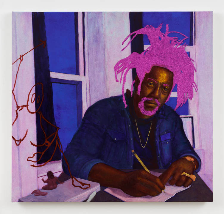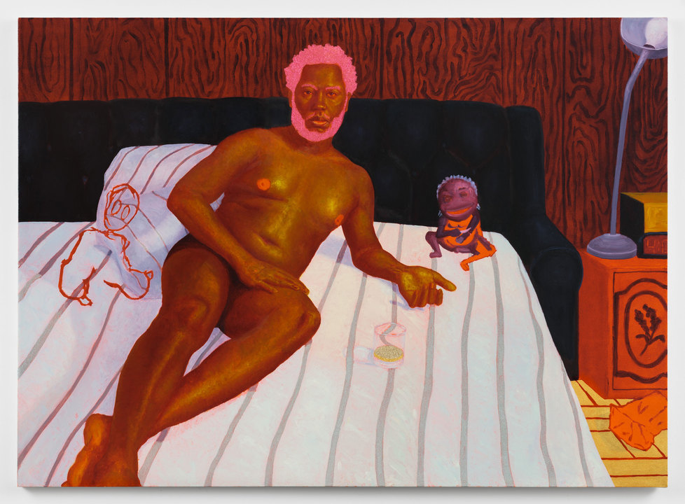 New York-based artist Arcmanoro Niles paints seemingly mundane moments of everyday life, enlivened by an eye-popping use of colour (oranges, pinks, purples, blue, greens and warm gold to convey the luminous tones of his subjects’ brown skin) and glitter. These are largely autobiographical, based on old photographs of relatives and friends, and remembered snapshots of his past, featuring in many public and private collections in the US and beyond.