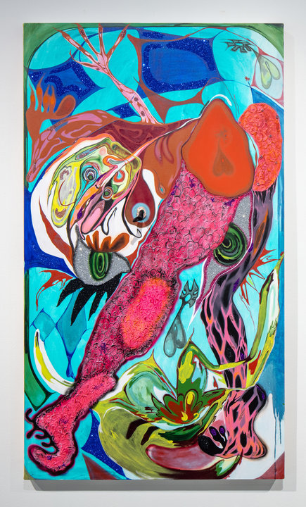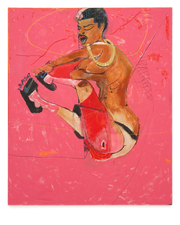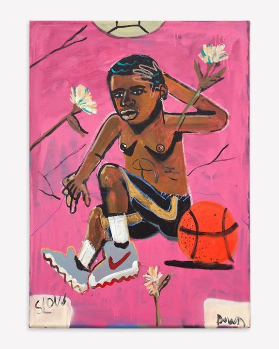 Set against graphically rendered backdrops, and frequently accompanied by “layered audio melodic soundscapes”, Chromati’s painted protagonists are defined by their full figures and “whimsical protective armour”, ranging from masks and pussy lips to chest keloids realised in glitter. The effect is a celebratory ode to self-identity and strength, offering insight into, what her gallery, New Image Art, terms “the spectrum of experiences that exist for women within public and private spaces, exceeding the limitations traditionally imposed on them.” A vital, ascendant voice, Chromati’s career has seen a two percent increase in momentum since 2019, and is continuing to gain traction.