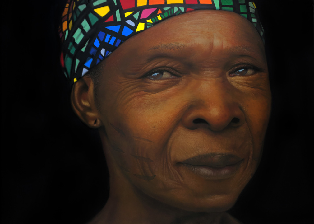 “Our ancestors used facial markings to identify a person by their tribe. The marks are so exact that clanspersons can recognise each other anywhere in the world,” the Nigerian artist explains. “My desire is to shine a light on some of the cultural practices we have here. They are beautiful, incredibly vast and under-explored.”