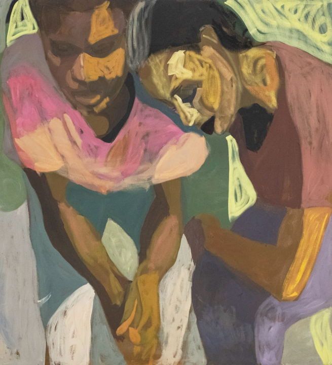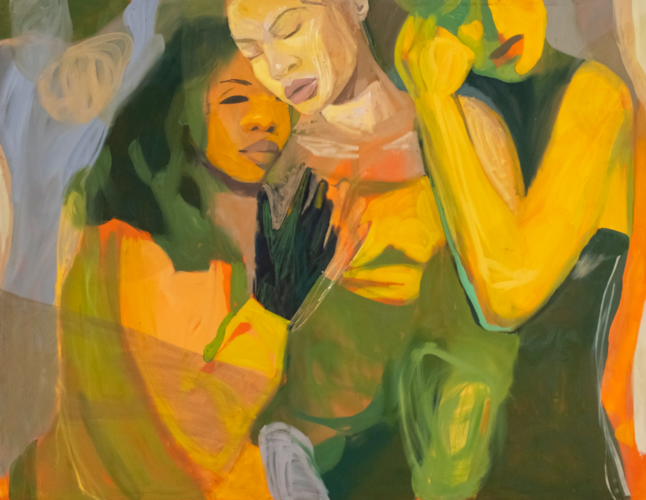 Her oil paintings are filled with elusive figures who hold each other close, heads on laps, arms around shoulders, flowing into each other across the canvas to create a mood that is at once dream-like and visceral. Whether articulating love or loss, togetherness or loneliness, ardour or resentment, these sentiments are deeply felt. “My works are a direct reflection of my emotions and who I am as an artist. As I grow as a person, as a mother, my work grows too,” she adds.
