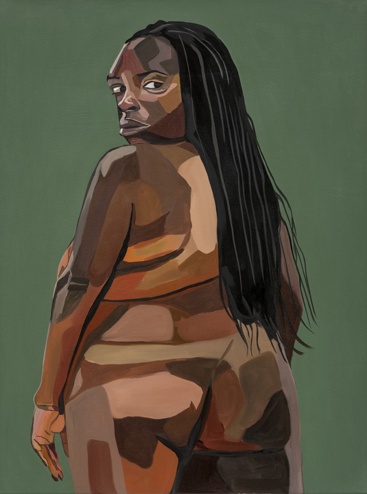 Ever since art school, I’ve always gone back to nude paintings of myself when I’m figuring things out. During the pandemic when I was home for a bit, I started doing them again. I wasn’t sure what it would mean to show them but I thought the Lagos show felt like a good chance to explore them.